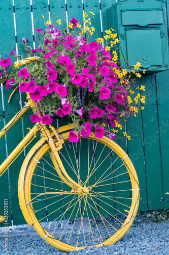 Stylish Elegant Old Red Bicycle With A Basket Of Flowers In A Stock Photo Picture And Royalty Free Image Image 30492321