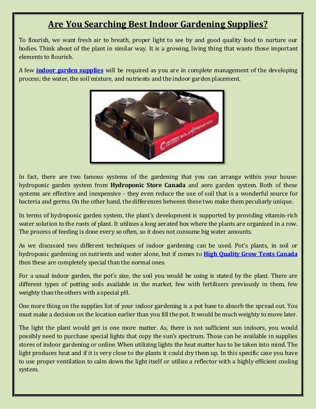 This dossier presents information on gardening supplies in canada.